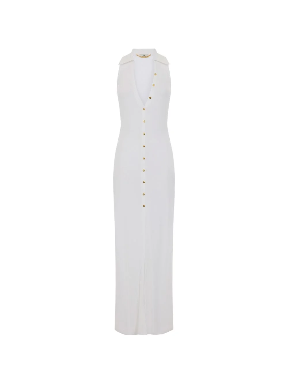 V-neck maxi dress Highlights - Ivory - V-neck - Sleeveless - Button embellishment Imported Composition Viscose 100% Washing instructions Read Manufacturer Guidelines