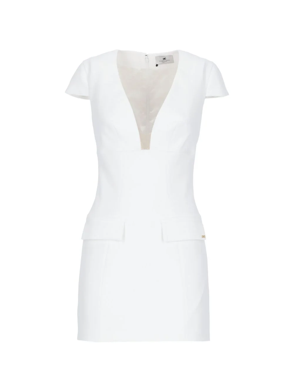 V-neck pocket dress Highlights - White - Ivory - V-neck - Cap sleeves - Two pockets - Logo detail - Mini length Made in Italy Composition Polyester 96%, Spandex/Elastane 4% Washing instructions Read Manufacturer Guidelines