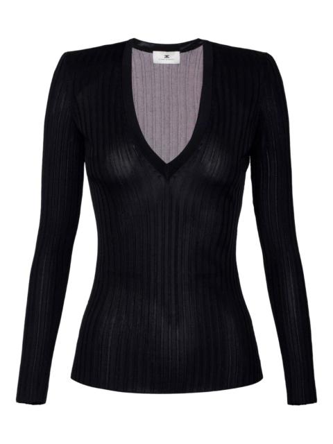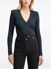 v-neck ribbed knitwear Highlights - Dark aquamarine - Ribbed knit - V-neck - Shoulder detail - Long sleeves Imported Composition Viscose 100% Washing instructions Read Manufacturer Guidelines