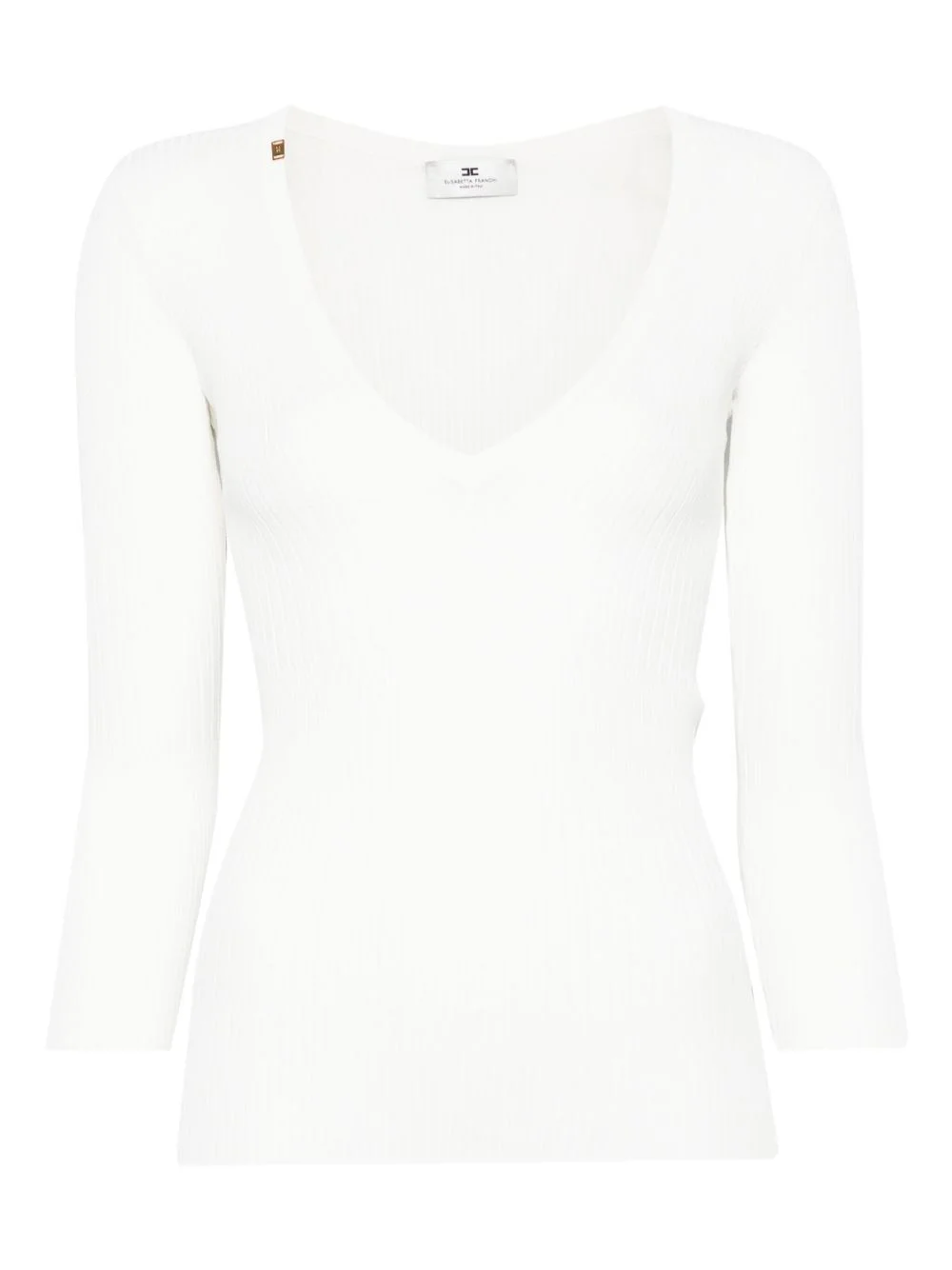 V-neck ribbed top Highlights - White - Three-quarter length sleeves - Logo plaque Made in Italy Composition Viscose 83%, Elastane 17% SIZE & FIT Model measurements Height 5 ft 11 in(1.8 m) Bust/Chest 32.67 in(83 cm) Hips 36.22 in(92 cm) Waist 24.4 in(62 cm) FittingInformation Designed for a close fit throughout Made from a midweight non-stretch fabric, this piece offers minimal elasticity when worn Washing instructions Hand Wash