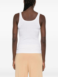 scoop-neck tank top Highlights - Ivory - Sleeveless - Scoop neck Imported Composition Viscose 52%, Virgin Wool 48% SIZE & FIT Model measurements Height 5 ft 11 in(1.8 m) Bust/Chest 32.67 in(83 cm) Hips 36.22 in(92 cm) Waist 24.4 in(62 cm) Washing instructions Hand Wash