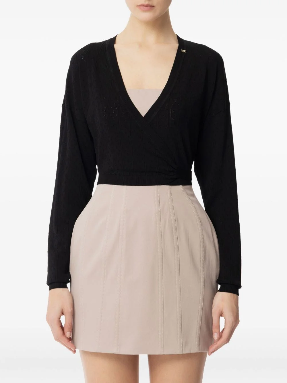 wrap tie-waist sweater Highlights - Black - Wrap construction - Tie fastening - Long sleeves - V-neck - Open knit detailing Imported Composition Fabric 100% Washing instructions Read Manufacturer Guidelines