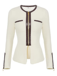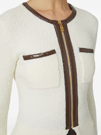 zip-fastening cardigan Highlights - Milk - Boucle knit - Vinyl details - Gold-tone zip - Logo label Imported Composition Wool 70%, Polyamide 30% Washing instructions Read Manufacturer Guidelines