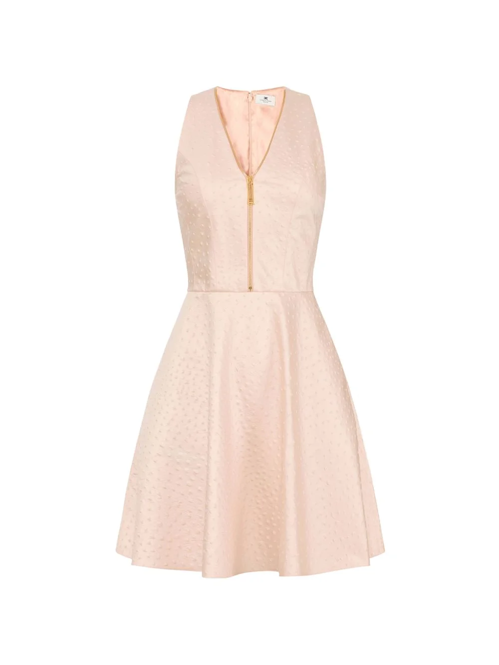 zip-neck V-neck mini dress Highlights - Pale pink - V-neck - Zip fastening - Sleeveless - Textured Imported Composition Outer: Polyester 100% Lining: Satin 100% Washing instructions Read Manufacturer Guidelines
