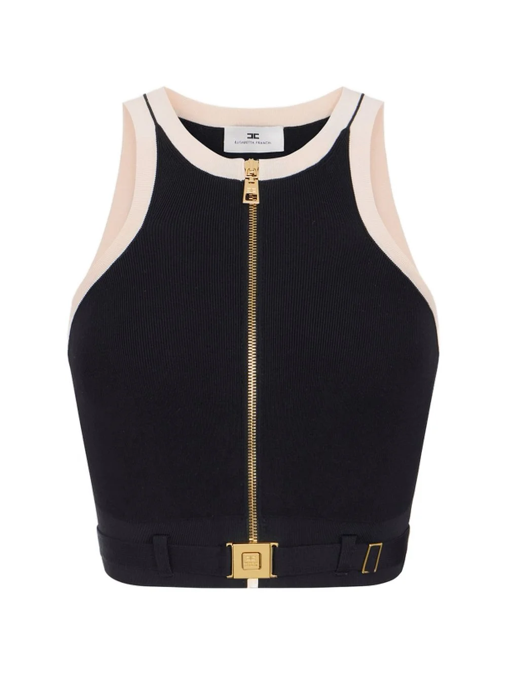 zip sleeveless top Highlights - Black and white - Contrasting colour trim - Logo plaque - Racerback neckline - Zip fastening Imported Composition Viscose 82%, Polyamide 18% Washing instructions Read Manufacturer Guidelines