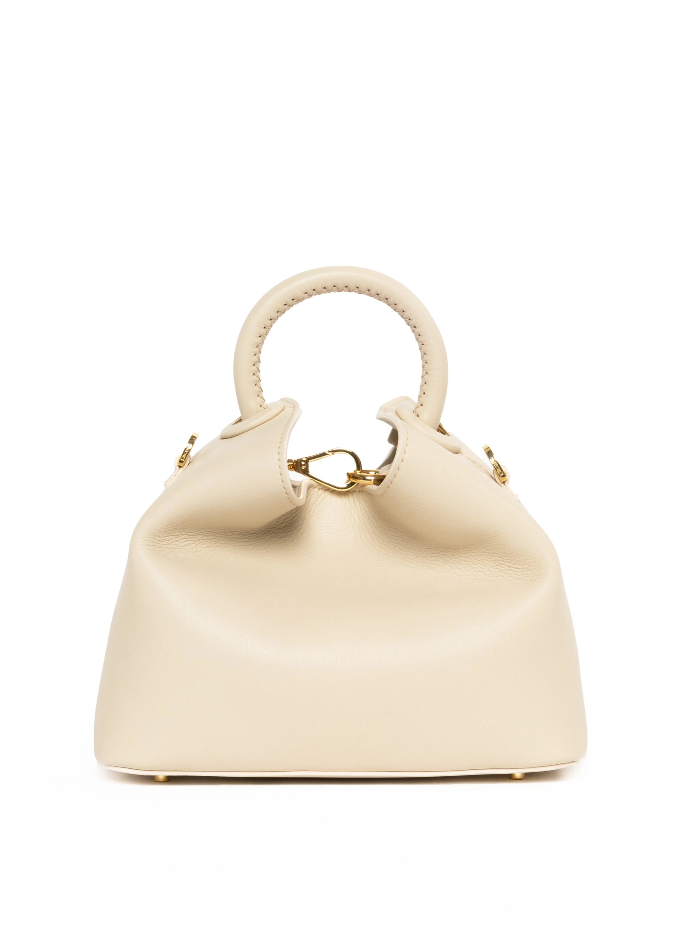 Size: 23L x 18H x 12D cm // 9"L x 7"H x 4,7"D Strap drop: 46cm to 53cm // 18" to 20" Description: Part of the Elleme signature-shaped bags. Tote shape with an open top, featuring a detachable, adjustable shoulder strap with a single top handle. Magnetic fastening with 18k gold-plated hardware. Made in Italy where the top handles have been hand stitched by Italian artisans Material: Body, Handle, and Strap in Leather