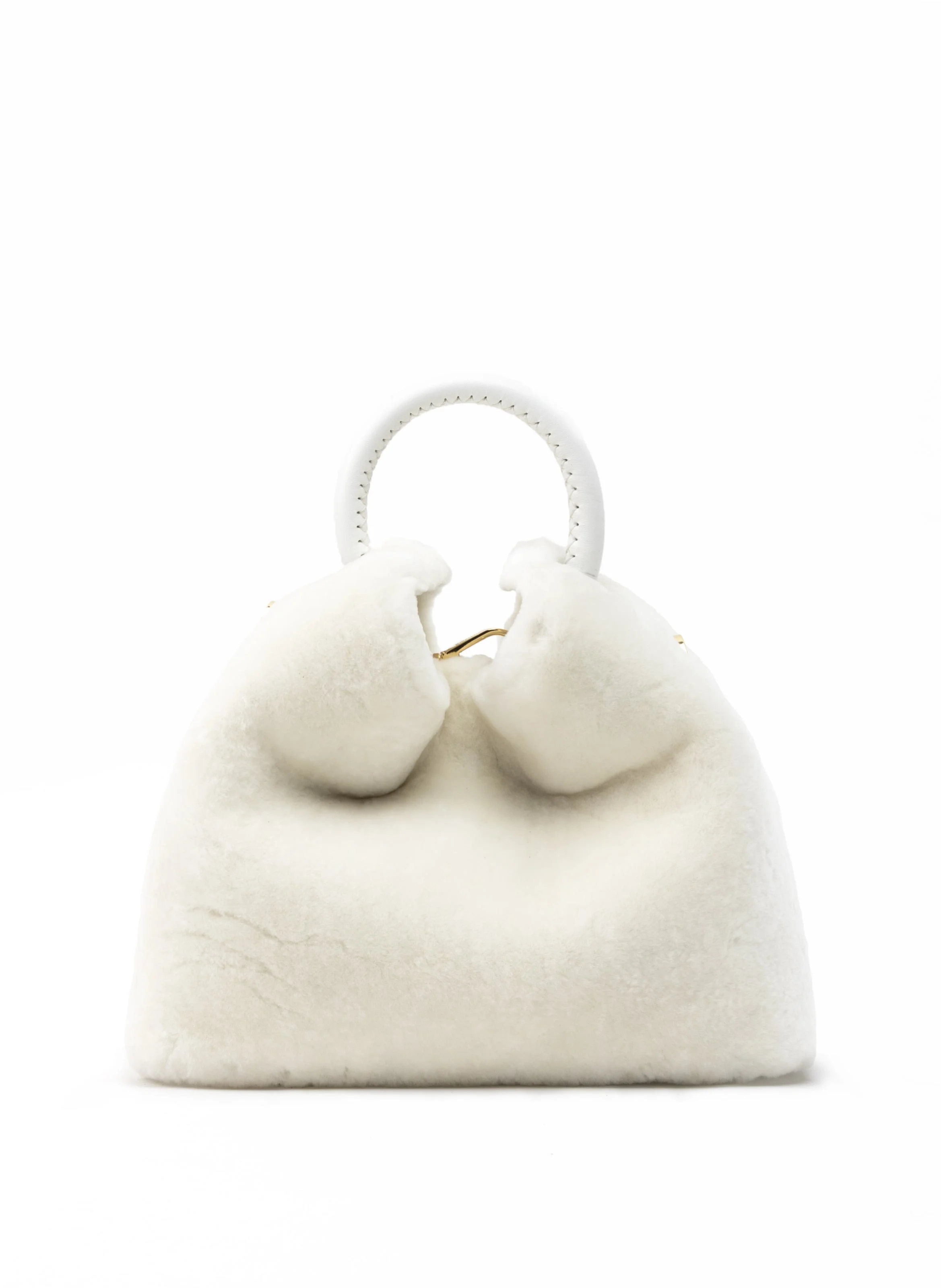 Inspired by the shape of the Chinese "Dumpling", the Baozi bag is the medium size of the signature line, featuring functionality and Italian craftsmanship. Details Width: 23cm // 9" Height: 18cm // 7" Depth: 12cm // 4,7" Weight: 415g Strap drop: 46cm to 53cm // 18" to 20" Exterior: Body in Shearling // Handle and Strap in Leather Lining: Microfiber suede Adjustable strap for shoulder or crossbody wear Inner zip and flat pockets Magnetic closure 18k gold-plated hardware Protective studs on the bottom Made in Italy