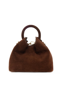 Size: Width: 23cm // 9" Height: 18cm // 7" Depth: 12cm // 4,7" Weight: 415g Strap drop: 46cm to 53cm // 18" to 20" Description: Inspired by the shape of the Chinese "Dumpling", the Baozi bag is the medium size of the signature line, featuring functionality and Italian craftsmanship Adjustable strap for shoulder or crossbody wear Inner zip and flat pockets Magnetic closure 18k gold-plated hardware Protective studs on the bottom Made in Italy The model is 1.78m Material: Exterior: 100% Suede Leather from Italian tannery Lining: Microfiber suede