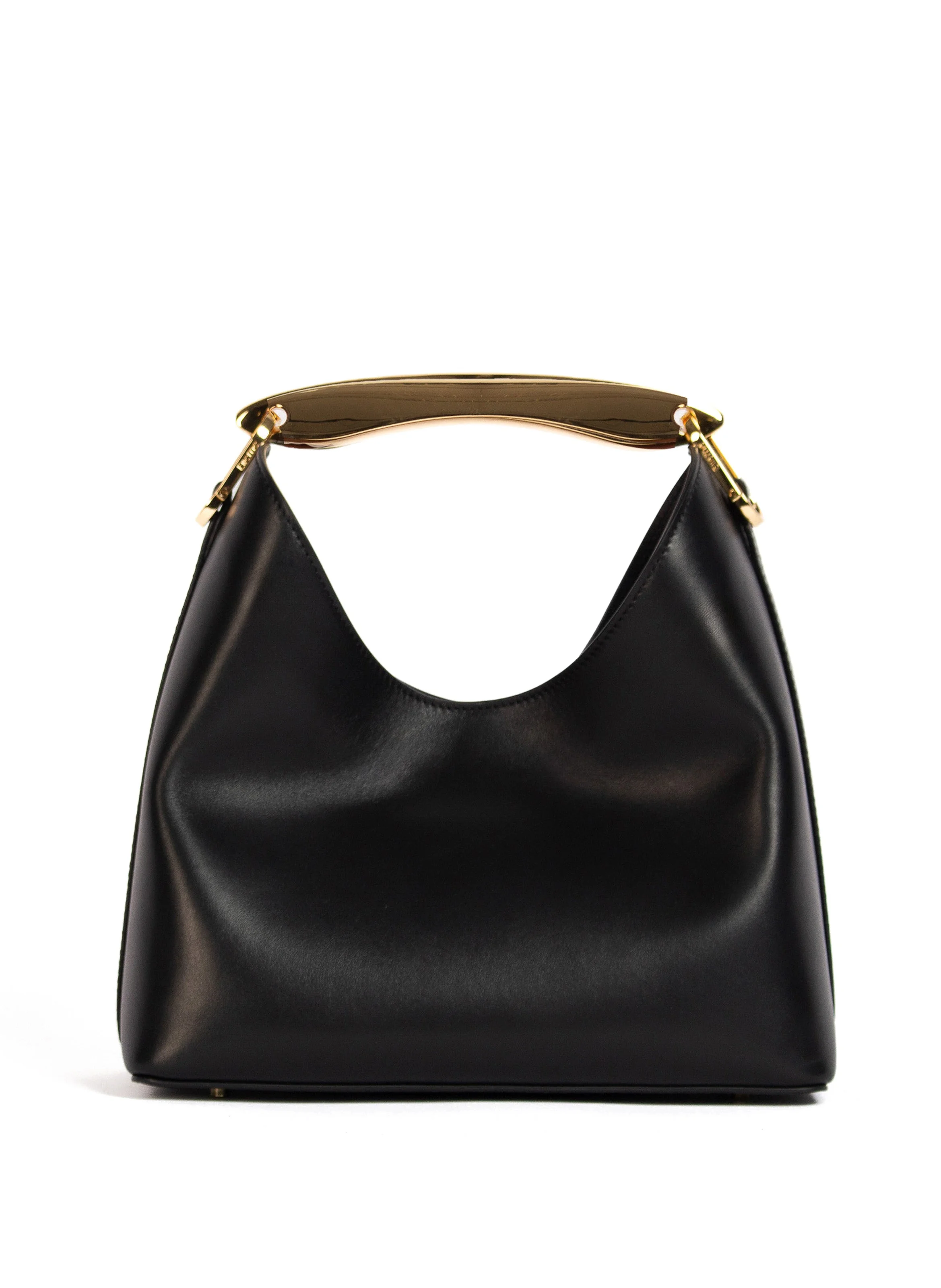 Accentuated by a sumptuous metal top handle, the Boomerang Large boasts the signature Elleme shape, epitomizing effortless chic Details Width: 27cm // 11" Height: 25cm // 10" Depth: 15cm // 5.9" Weight: 620g Strap drop:46cm // 18" Exterior: 100% Lambskin Leather from Italian tannery Lining: Microfiber suede Removable strap for a shoulder or crossbody wear Inner zip and flat pockets Magnetic closure 18k gold plated hardware Protective studs on the bottom Made in Italy