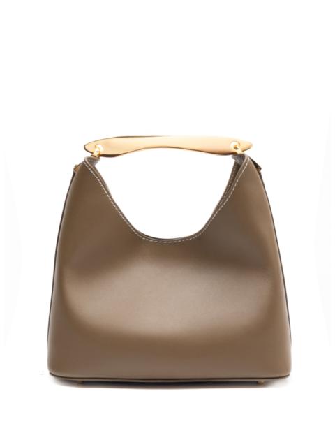 Accentuated by a sumptuous metal top handle, the Boomerang Large boasts the signature Elleme shape, epitomizing effortless chic Details Width: 27cm // 11" Height: 25cm // 10" Depth: 15cm // 5.9" Weight: 620g Strap drop:46cm // 18" Exterior: 100% Lambskin Leather from Italian tannery Lining: Microfiber suede Removable strap for a shoulder or crossbody wear Inner zip and flat pockets Magnetic closure 18k gold plated hardware Protective studs on the bottom Made in Italy