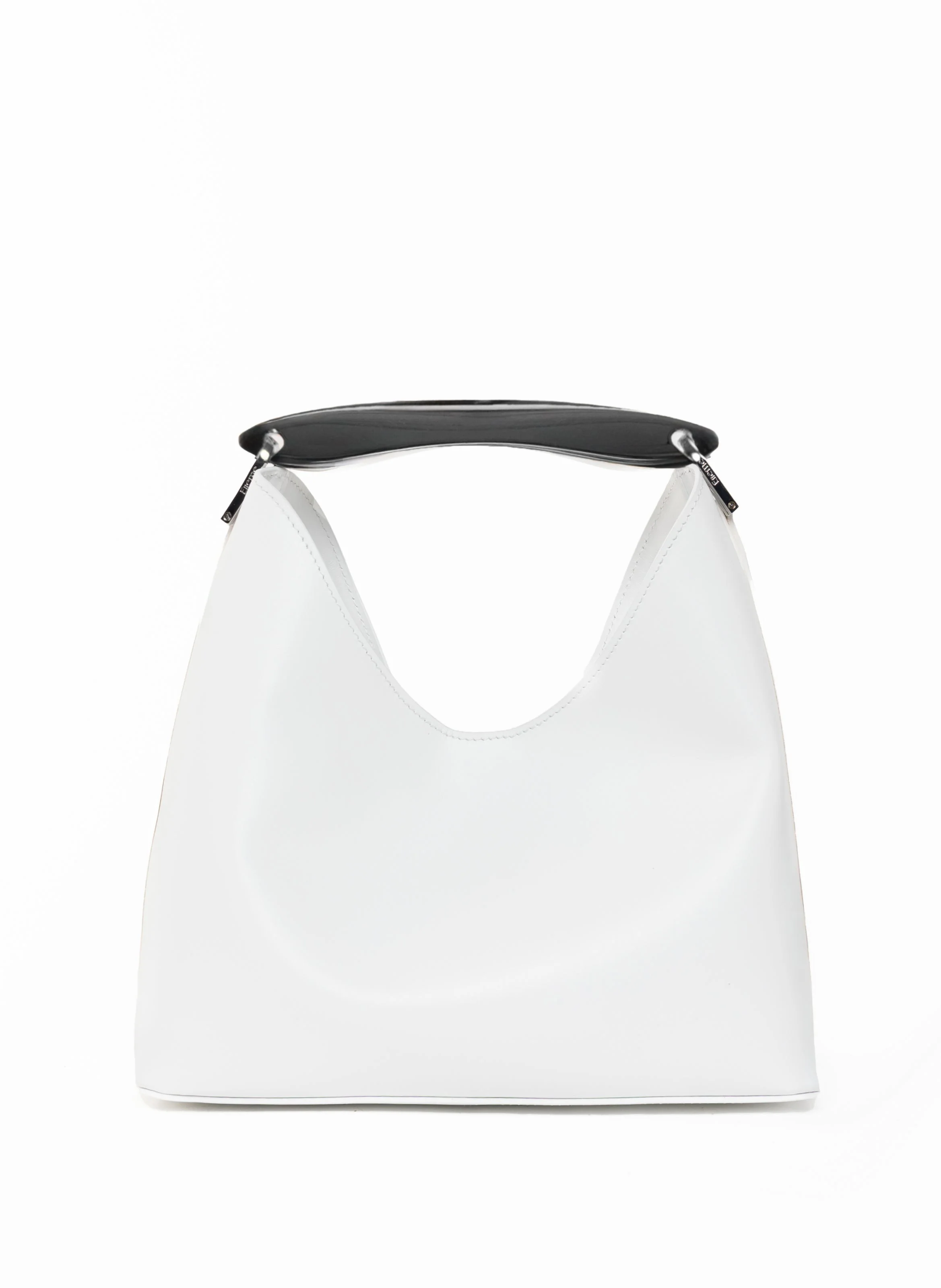 Accentuated by a sumptuous metal top handle, the Boomerang Large boasts the signature Elleme shape, epitomizing effortless chic Details Width: 27cm // 11" Height: 25cm // 10" Depth: 15cm // 5.9" Weight: 620g Strap drop:46cm // 18" Exterior: 100% Lambskin Leather from Italian tannery Lining: Microfiber suede Removable strap for a shoulder or crossbody wear Inner zip and flat pockets Magnetic closure Silver plated hardware Protective studs on the bottom Silver hardware Made in Italy The model is 1.78 m