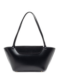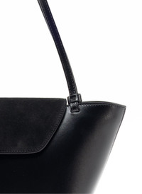 A structured tote bag with magnetic flap Details Top Width: 36cm // 14.2" Bottom Width: 22.5cm // 8.9" Height: 17cm // 6,7" Depth: 11cm // 4,3" Strap drop: 24cm // 9.4" Exterior: Body and Strap in Leather // Handle in Suede Lining: Microfiber suede A structured tote bag with magnetic flap Interior zipped pocket Thin shoulder straps Worn as shoulder bag Made in Italy