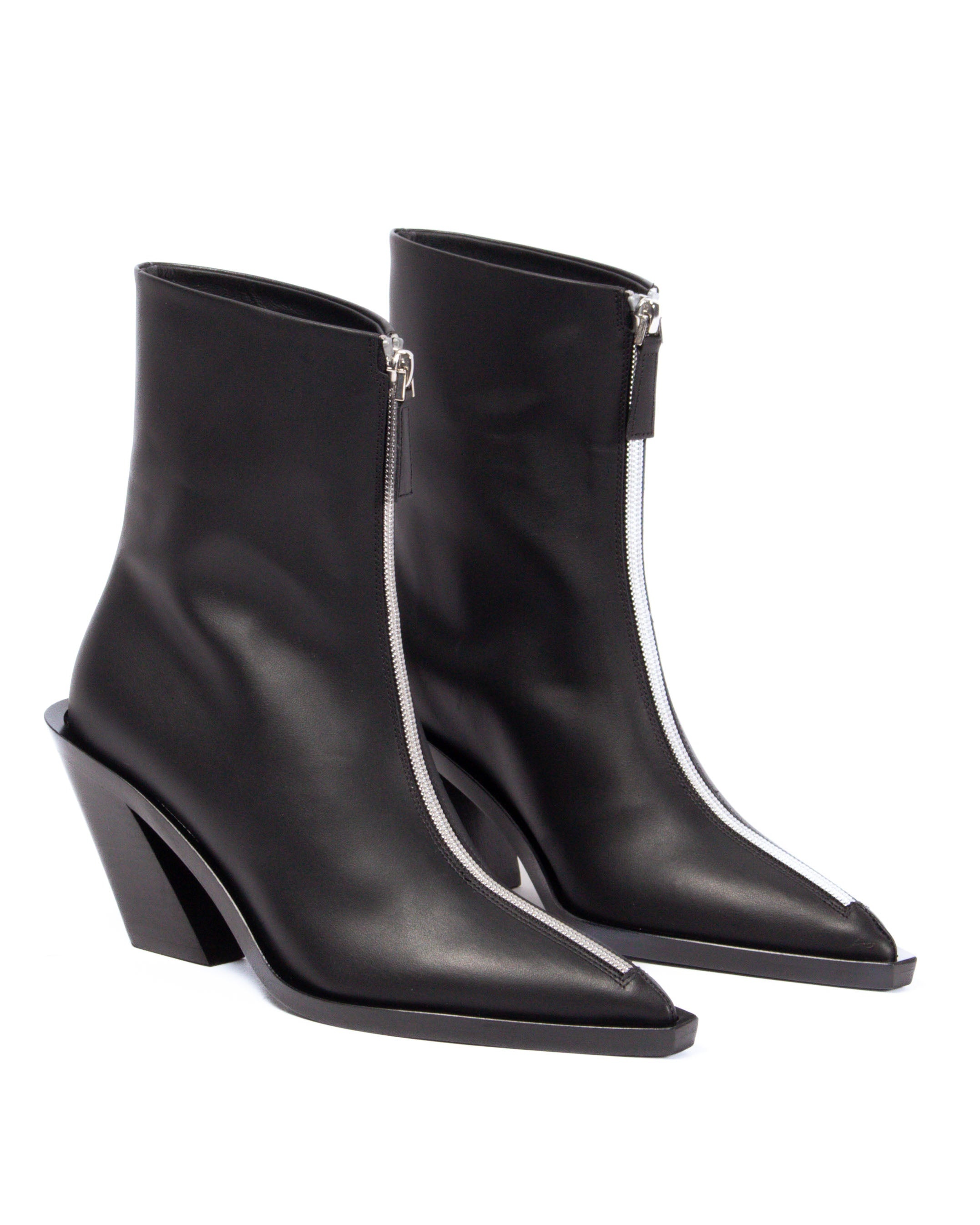 Our iconic statement boots. Details Zip detailing. Slanted block heel. Block Heel 8 cm. Made in Italy. 100% Calf Leather