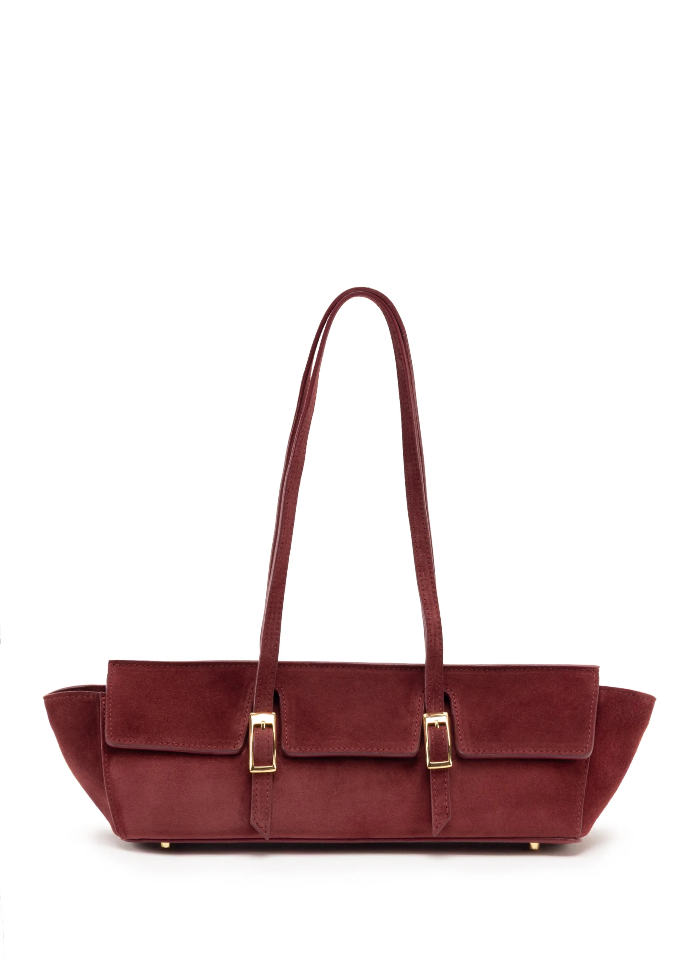 A sleek east-west shoulder bag with a structured silhouette and signature Elleme buckles, designed to carry your daily essentials with effortless elegance. Details Top width – 42cm // 16.5” Bottom width – 30cm // 11.8” Height – 12cm // 4.7” Depth – 10cm // 3.9” Strap drop – 25cm // 9.8” Exterior: 100% Suede leather Lining: Microfiber suede Inner zipped pocket Magnetic closure Silver hardware Made in Italy Protective metal feet