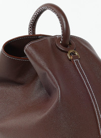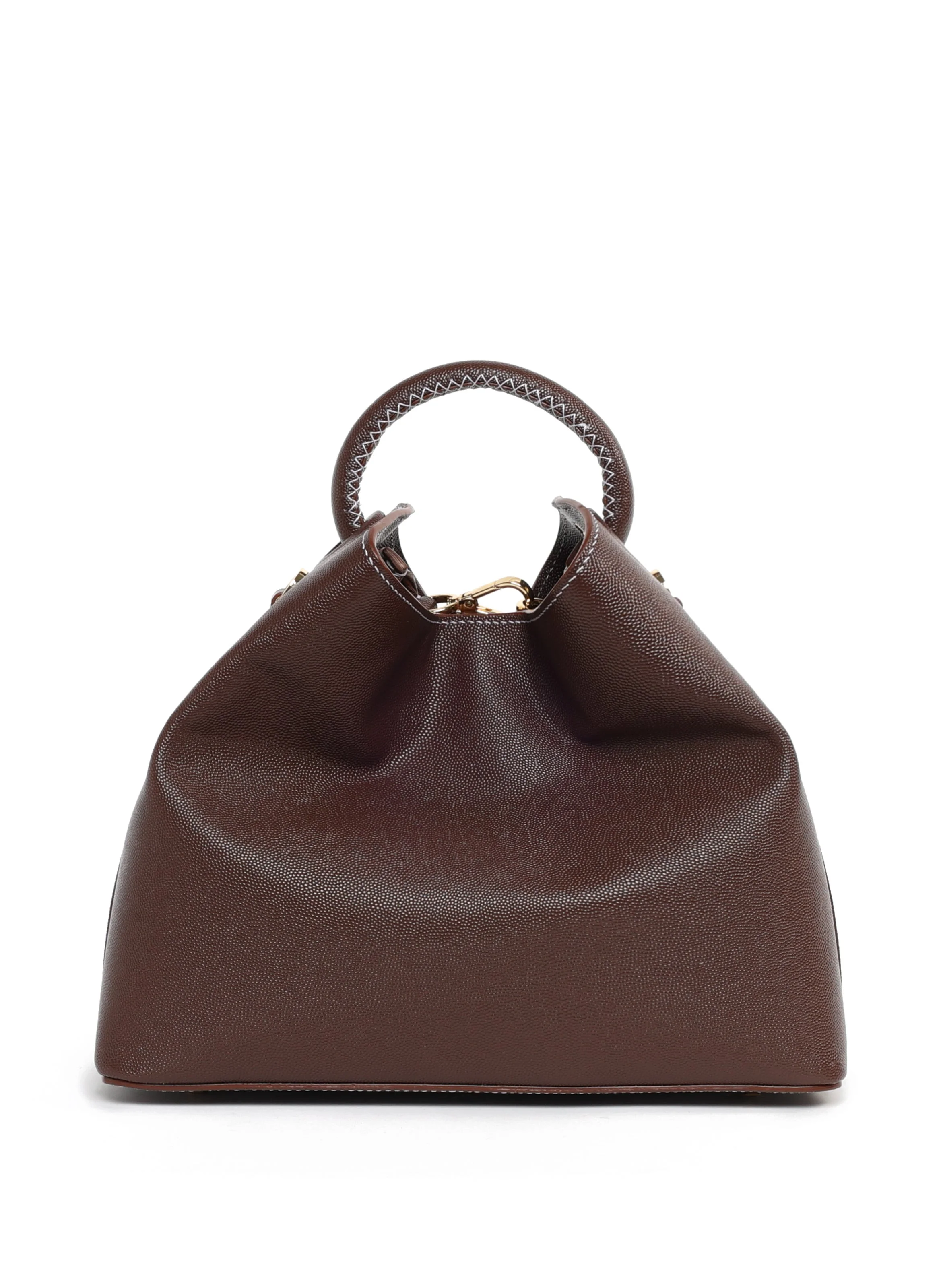 Size: Width: 28cm // 11" Height: 22cm // 8.6" Depth: 15cm // 5.9" Weight: 590g Strap drop: 46cm // 18" Description: Introduced in Elleme's inaugural collection, Raisin is a timeless design characterized by its organic shape, hand-stitched top handle, and understated elegance Removable strap for shoulder wear Inner zip and flat pockets Magnetic closure 18k gold-plated hardware Protective studs on the bottom Made in Italy Material: Exterior: 100% Textured Cow Leather from Italian tannery Lining: Microfiber suede