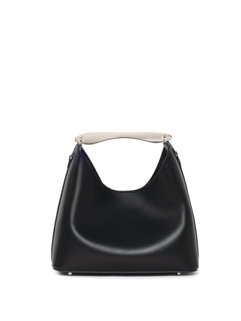 With its compact size, luxurious craftsmanship, and sophisticated metal top handle, the Boomerang Small pays homage to Elleme's signature aesthetic Details Width: 22cm // 9" Height: 22cm // 9" Depth: 10cm // 4" Weight: 400g 46cm to 53cm // 18" to 20" Exterior: 100% Textured Cow Leather from Italian tannery Lining: Microfiber suede Removable and adjustable strap for a shoulder or crossbody wear Inner flat pocket Magnetic closure 18k gold plated hardware Protective studs on the bottom Made in Italy