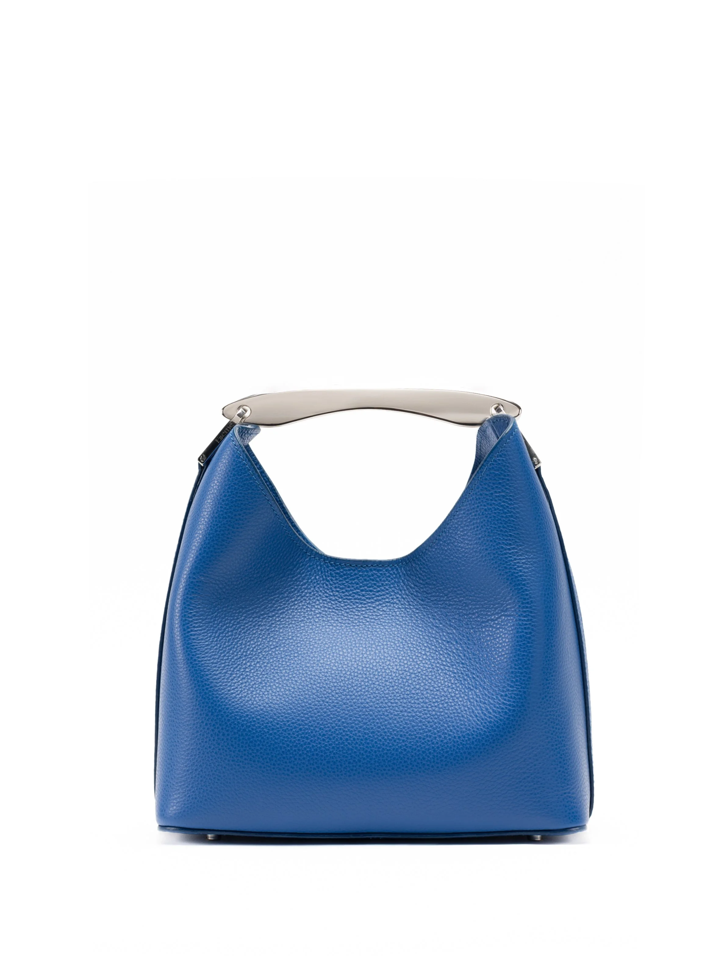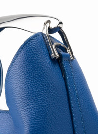Small Boomerang Pebbled Leather Azure Blue-Silver