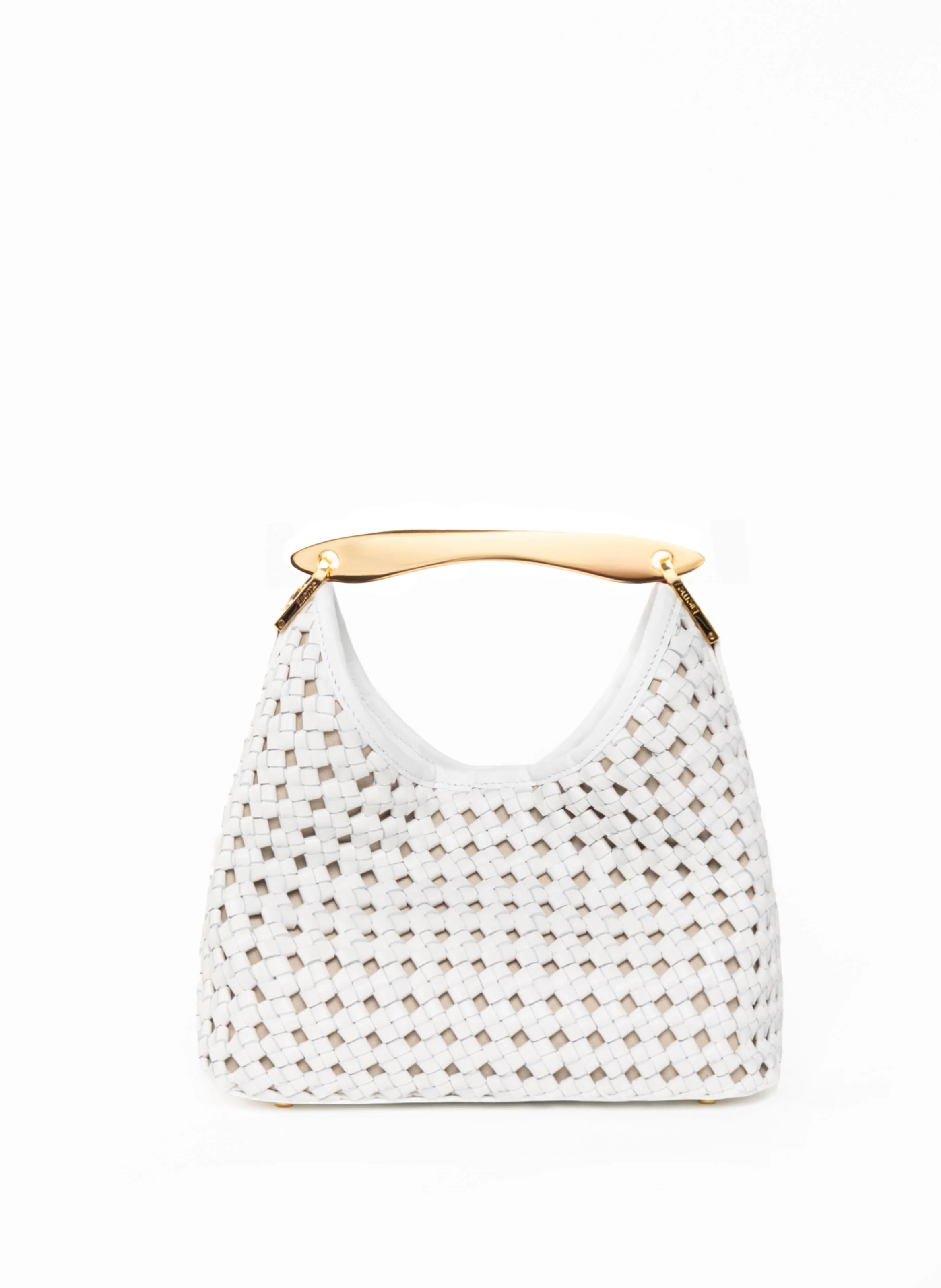 With its compact size, luxurious craftsmanship, and sophisticated metal top handle, the Boomerang Small pays homage to Elleme's signature aesthetic Details Width: 22cm // 9" Height: 22cm // 9" Depth: 10cm // 4" Weight: 400g 46cm to 53cm // 18" to 20" Exterior: 100% Lambskin Leather from Italian tannery Lining: Microfiber suede Removable and adjustable strap for a shoulder or crossbody wear Inner flat pocket Magnetic closure 18k gold plated hardware Protective studs on the bottom Made in Italy