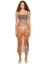 Sheer stretch recycled polyester mesh dress. Graphic pattern printed throughout. · Square neck · Slit at front hem · Elasticized shoulder straps · Stretch recycled polyester bra-style underlay Supplier color: Print multi 90% recycled polyester, 10% elastane. Made in Slovenia 232752F055001