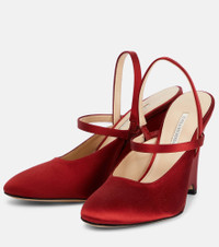 The Aster pumps from Emilia Wickstead are defined by sculptured wedges and streamlined uppers, both crafted from lustrous Italian satin. The pair is complete with double ankle straps to create a flattering effect. Product Details - Upper: fabric - Lining: leather - Sole: leather insole and sole - Toe shape: round toe - Made in Italy - Designer color name: Red - Comes with a box - Comes with dust bags - Item number: P00828759 Size & Fit - Fits small to size - we recommend trying one size larger - European sizes - 11,5cm-4.5" wedge heel (size EU 38)