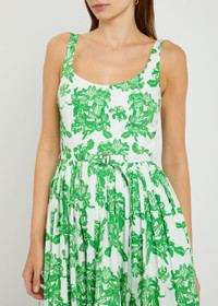 Info & Care Emilia Wickstead cotton poplin dress Printed, scoop-neck, gathered details at waist, belt loops, detachable belt, side slip pockets, fully lined Concealed hook and zip fastening at back 100% cotton Dry clean Size & Fit Length shoulder to hem: 46 inches/ 117cm Midweight Slim across the bust, loose skirt Model is 5'9"/ 175cm and wears a size;UK8