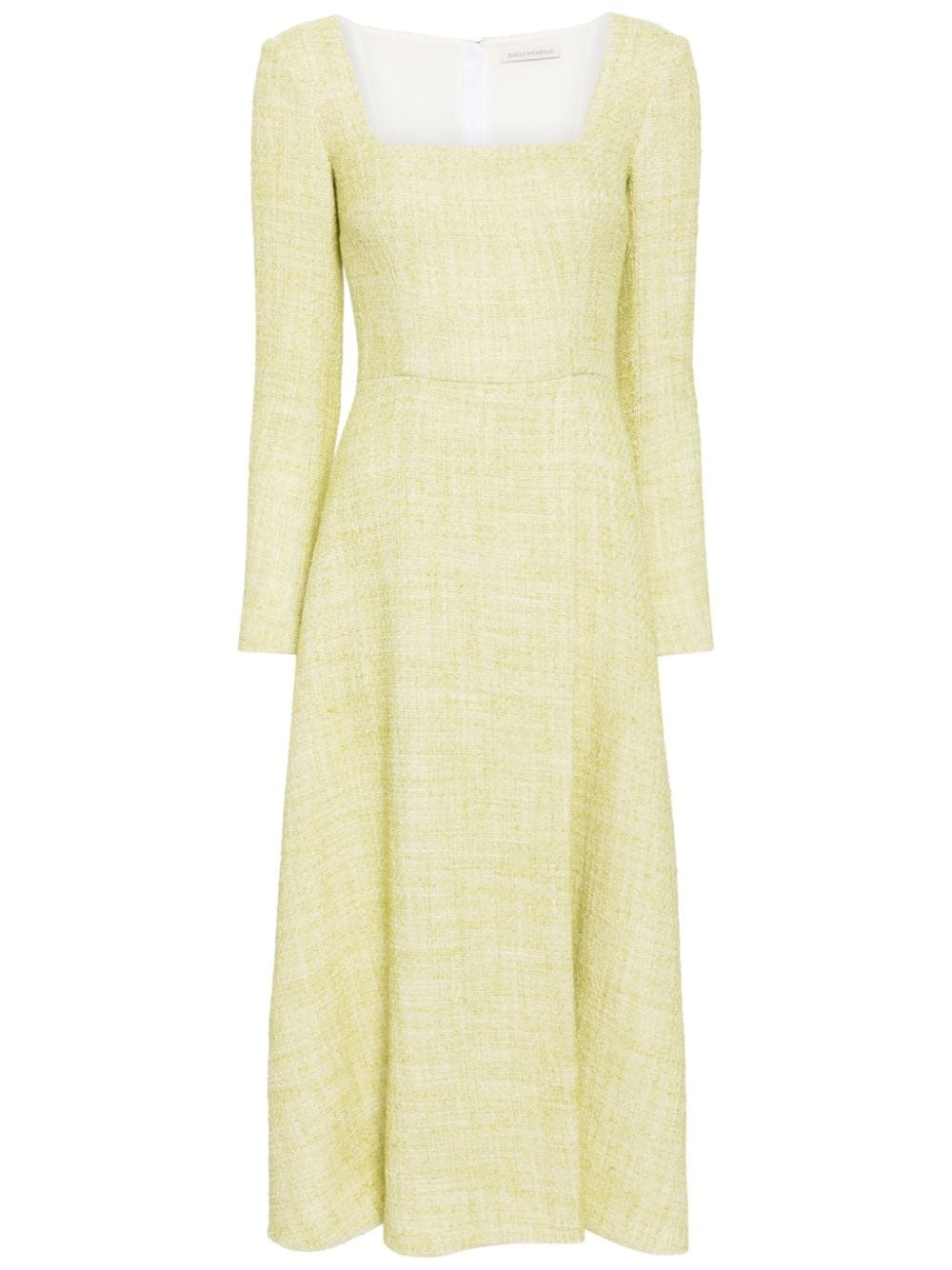 Fara tweed midi dress Highlights - Apple green - Cotton blend - Tweed - Draped detailing - Square neck - Concealed rear zip fastening - Long sleeves - Fitted waistline - Straight hem - Mid-length Made in United Kingdom Composition Outer: Cotton 77%, Polyester 19%, Polyamide 4% Lining: Polyester 100% SIZE & FIT Model measurements Height 5 ft 10 in(1.78 m) Bust/Chest 31.88 in(81 cm) Hips 35.43 in(90 cm) Waist 24.4 in(62 cm) FittingInformation Designed for a slim fit that sits just away from the body offering a close yet comfortable fit The dart stitching adds structure and a closer fit in the torso of this piece Made from a midweight non-stretch fabric This piece fits true to size – take your usual size