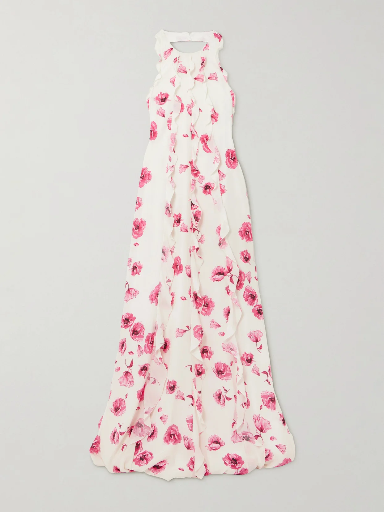Fleurine Ruffled Floral-print Silk Crepe De Chine Halterneck Gown