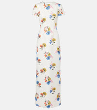 The Fosette floral maxi dress has all the romance and refinement the Emilia Wickstead is best known for. It's simple front is offset by a slightly open back and a back pleated panel. Product Details - Material: 100% polyester - Care instructions: dry clean - Made in China - Designer color name: Retro Bouquet On White - Item color: multicolor - Sleeves: short-sleeved - Collar: crewneck - Closure: zipped back, buttoned back - Floral - Hem: straight - Item number: P01051582 Size & Fit - True to size - Fitted - Non-stretchy fabric - The model seen in the picture is 178cm-5'10" and wearing a size UK 8