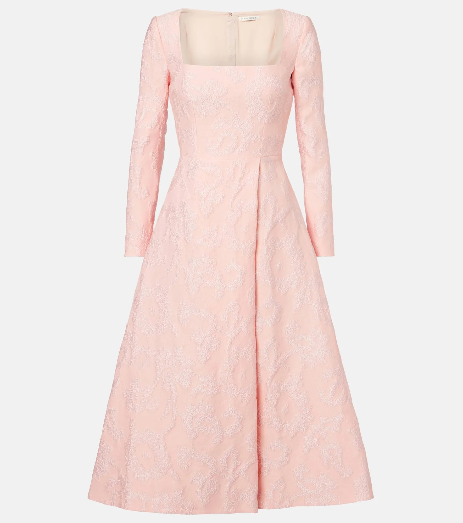 At once polished and pared-back, Emilia Wickstead proves that simple, well-executed designs will stand out. The Glenda crepe midi dress boasts a square neckline, long sleeves, and charming embroideries all over the silhouette. Product Details - Material: 44% polyamide, 42% polyester, 14% silk - Care instructions: dry clean - Made in the UK - Designer color name: Ballet Pink - Item color: pink - Lining: 100% polyester - Cuff: zipped - Closure: concealed zipper, zipped back, hook-fastening back - Item number: P01070461 Size & Fit - True to size - Cinched waist - Non-stretchy fabric - The model seen in the picture is 178cm-5'10" and wearing a size UK 8