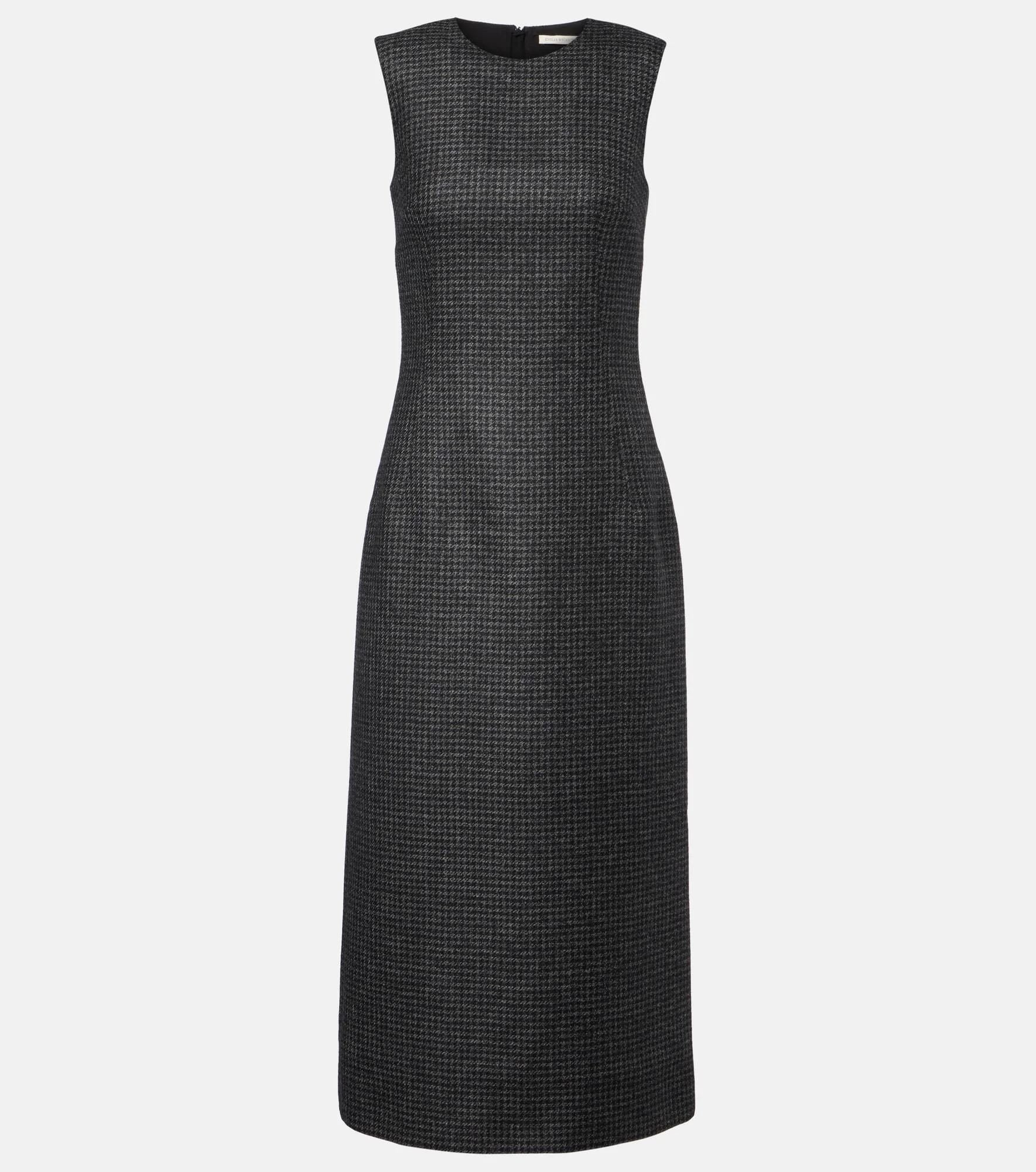At once polished and pared-back, Emilia Wickstead proves that simple, well-executed silhouettes will stand out. A fitting example, the Hartley midi dress is crafted from a warm wool blend and adorned with a refined houndstooth motif. Product Details - Material: 70% wool, 30% viscose - Care instructions: dry clean - Made in the UK - Designer color name: Dark Grey - Item color: gray - Lining: 100% polyester - Closure: concealed zipped back - Hem: straight - Short vent - Item number: P01070409 Size & Fit - True to size - Cinched waist - Non-stretchy fabric - slit length 35cm-14" - The model seen in the picture is 178cm-5'10" and wearing a size UK 8