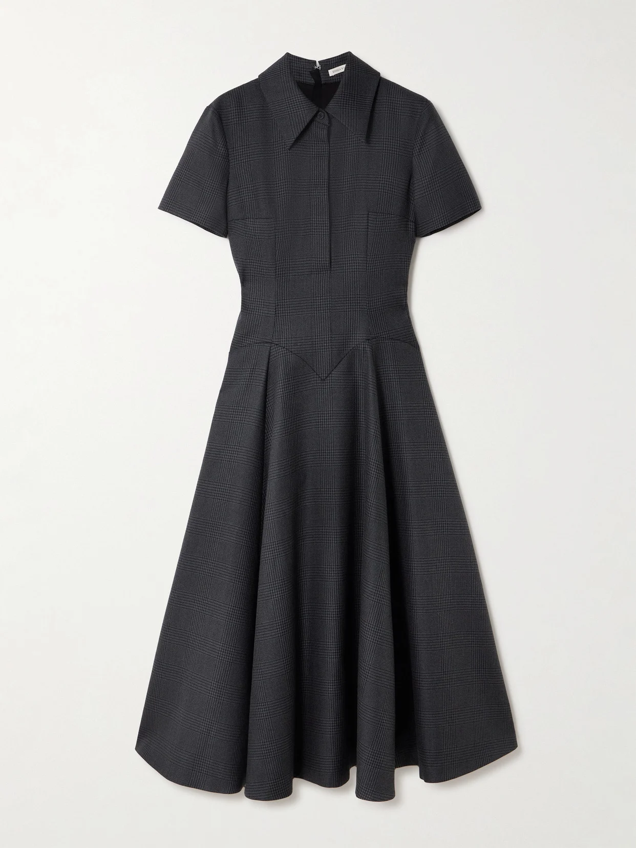 Emilia Wickstead's 'Jody' dress recalls vintage styles but with a modern twist. Made from Prince of Wales checked wool-blend, it has a shirt-style collar and corset-inspired stitching to emphasize the nipped-in waist. Undo a few buttons for a relaxed take.