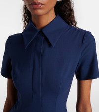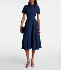 At once polished and pared-back, Emilia Wickstead proves that simple, well-executed silhouettes will stand out. The lightweight Jody shirt dress is thoughtfully crafted into a sculpting fit-and-flare silhouette. Product Details - Material: 53% polyester, 43% wool, 4% elastane - Care instructions: dry clean - Made in the UK - Designer color name: Navy - Item color: blue - Lining: 100% polyester - Collar: classic (Straight point) - Closure: concealed closure, partially buttoned front - Item number: P01051617 Size & Fit - True to size - Cinched waist - Non-stretchy fabric - The model seen in the picture is 178cm-5'10" and wearing a size UK 8