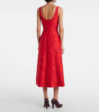 Turn to Emilia Wickstead for unforgettable garments that will make a striking impression at your next event. The Labrina boucle midi dress features a delicate jacquard pattern and is finished with a curved cut at the back. Product Details - Material: 44% polyamide, 42% polyester, 14% silk - Care instructions: dry clean - Made in the UK - Designer color name: Red - Item color: red - Lining: 73% acetate, 27% silk - Closure: concealed zipper, zipped back, hook-fastening back - Item number: P01070420 Size & Fit - Fits large to size - we recommend trying one size smaller - Low back - Cinched waist - Non-stretchy fabric - The model seen in the picture is 178cm-5'10" and wearing a size UK 6