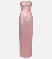 At once polished and pared-back, Emilia Wickstead proves that simple, well-executed silhouettes will stand out. Designed from a holographic cloque, the Laelia gown features a fitted bustier bodice and a zip closure at the back. Product Details - Material: 57% polyester, 35% metallic fibres, 8% polyamide - Care instructions: dry clean - Made in the UK - Designer color name: Pink - Item color: pink - Lining: 100% polyester - Built-in bustier - Boning - Closure: zipped back - Fully lined - Long vent - Item number: P01051514 Size & Fit - True to size - Strapless - Internal boned corset for support - Cinched waist - Non-stretchy fabric - slit length 66cm-26" - The model seen in the picture is 178cm-5'10" and wearing a size UK 8