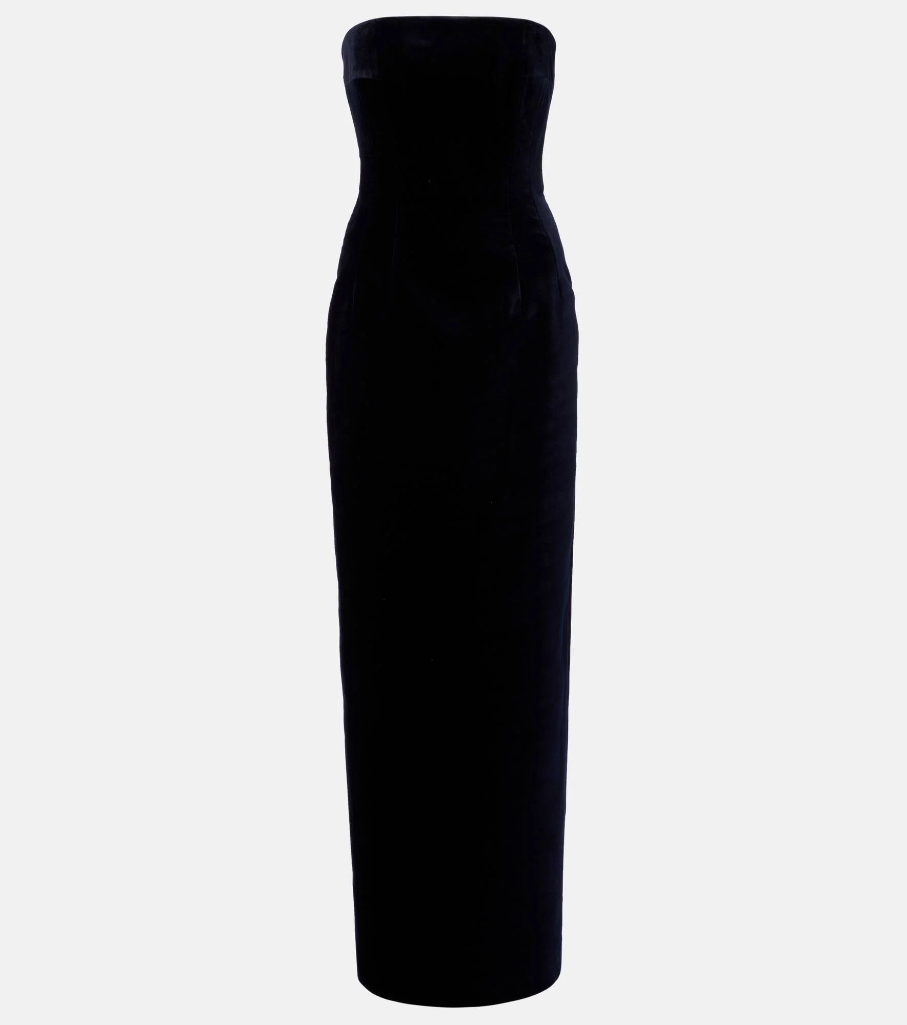 At once polished and pared-back, Emilia Wickstead proves that simple, well-executed silhouettes will stand out. The Laelia gown is cut from plush velvet and features a strapless, column silhouette. Product Details - Material: 100% cotton - Care instructions: dry clean - Made in the UK - Designer color name: Navy - Item color: blue - Lining: 100% polyester - Built-in bustier - Boning - Closure: concealed zipped back - Long vent - Item number: P01080439 Size & Fit - True to size - Strapless - Internal boned corset for support - Fitted - Non-stretchy fabric - slit length 65cm-25.5" - The model seen in the picture is 178cm-5'10" and wearing a size UK 8