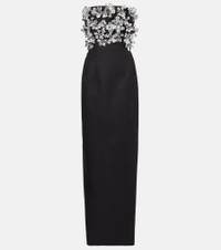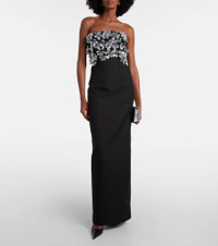 Woven into each collection, Emilia Wickstead’s decadent blooms are a hallmark of the brand. The Laelia gown is made to a column silhouette with an internal corset and embellished with enamel flowers on the bodice. Product Details - Material: 100% polyester - Care instructions: spot clean - Made in the UK - Designer color name: Enamel Flowers On Black - Item color: black - Lining: 100% polyester - Details: 75% polyvinyl chloride, 25% glass - Hardware color: silver - Boning - Closure: concealed zipped back - Long vent - Item number: P01070459 Size & Fit - True to size - Strapless - Internal boned corset for support - Fitted - Non-stretchy fabric - slit length 65cm-25.5" - The model seen in the picture is 178cm-5'10" and wearing a size UK 8