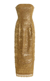 Laelia Foiled Lace Midi Dress gold
