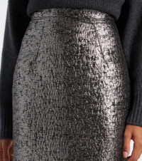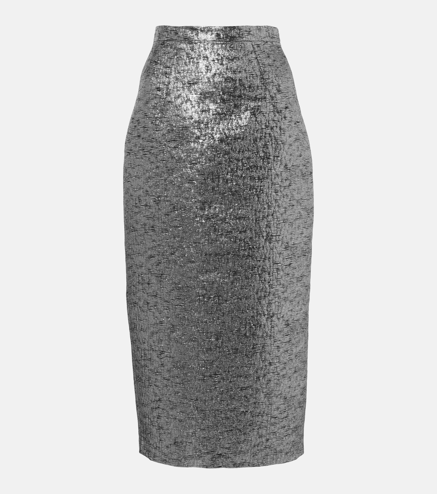 Product Details - Material: 70% polyester, 30% elastane - Care instructions: dry clean - Made in the UK - Designer color name: Silver - Closure: invisible zipper - Lining: 100% polyester - Item number: P00989343 Size & Fit - True to size - Non-stretchy fabric - High-waisted - slit length 30cm-12" - The model seen in the picture is 178cm-5'10" and wearing a size UK 8