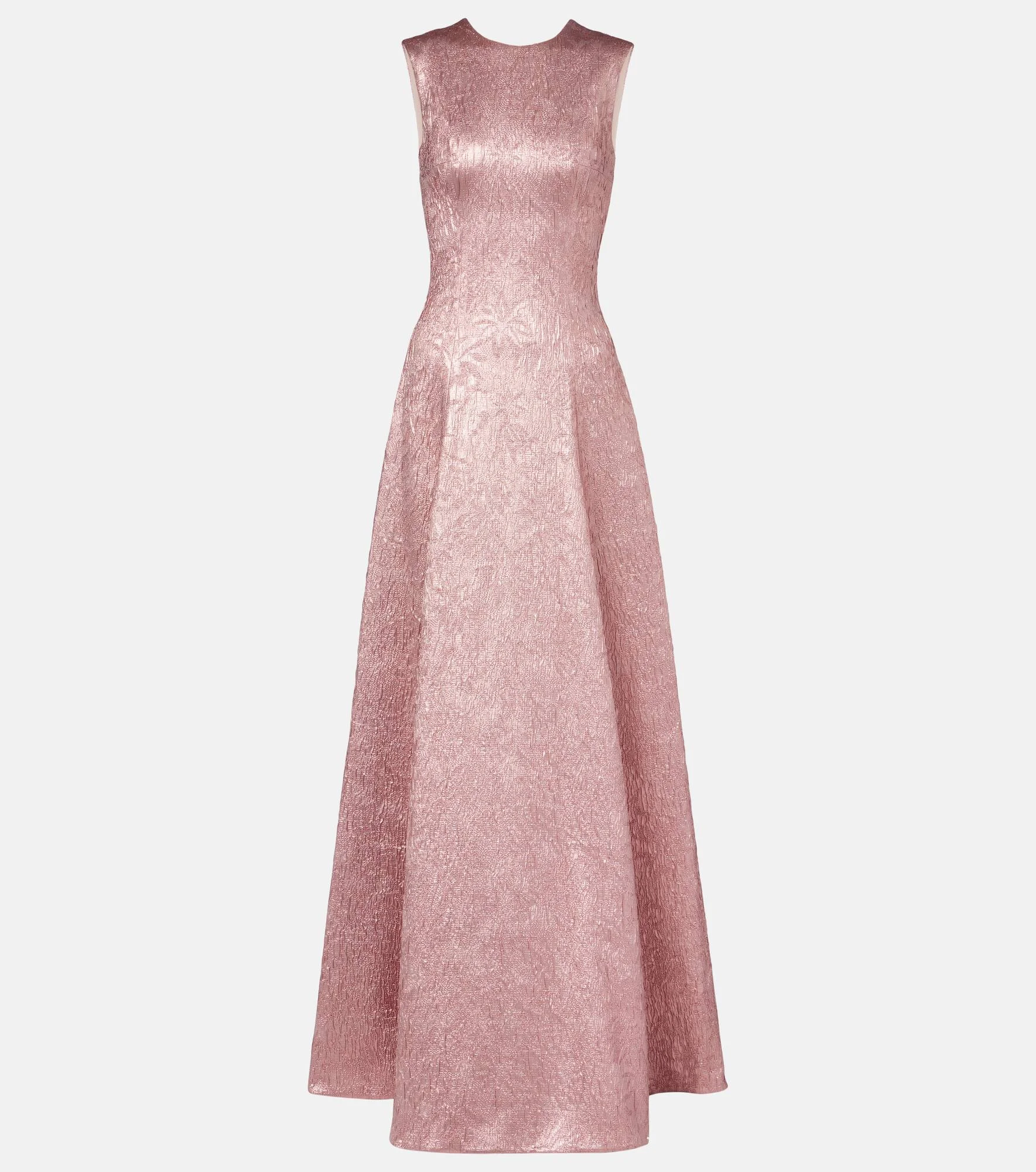 At once polished and pared-back, Emilia Wickstead proves that simple, well-executed silhouettes will stand out. The Nodin gown is crafted from holographic cloque, featuring an alluring open back, slit pockets and a zip-back closure. Product Details - Material: 57% polyester, 35% metallic fibres, 8% polyamide - Care instructions: dry clean - Made in the UK - Designer color name: Pink - Item color: pink - Lining: 100% polyester - Closure: zipped back - Pockets: side slit pockets - Fully lined - Item number: P01051516 Size & Fit - True to size - Low back - Cinched waist - Non-stretchy fabric - The model seen in the picture is 178cm-5'10" and wearing a size UK 8