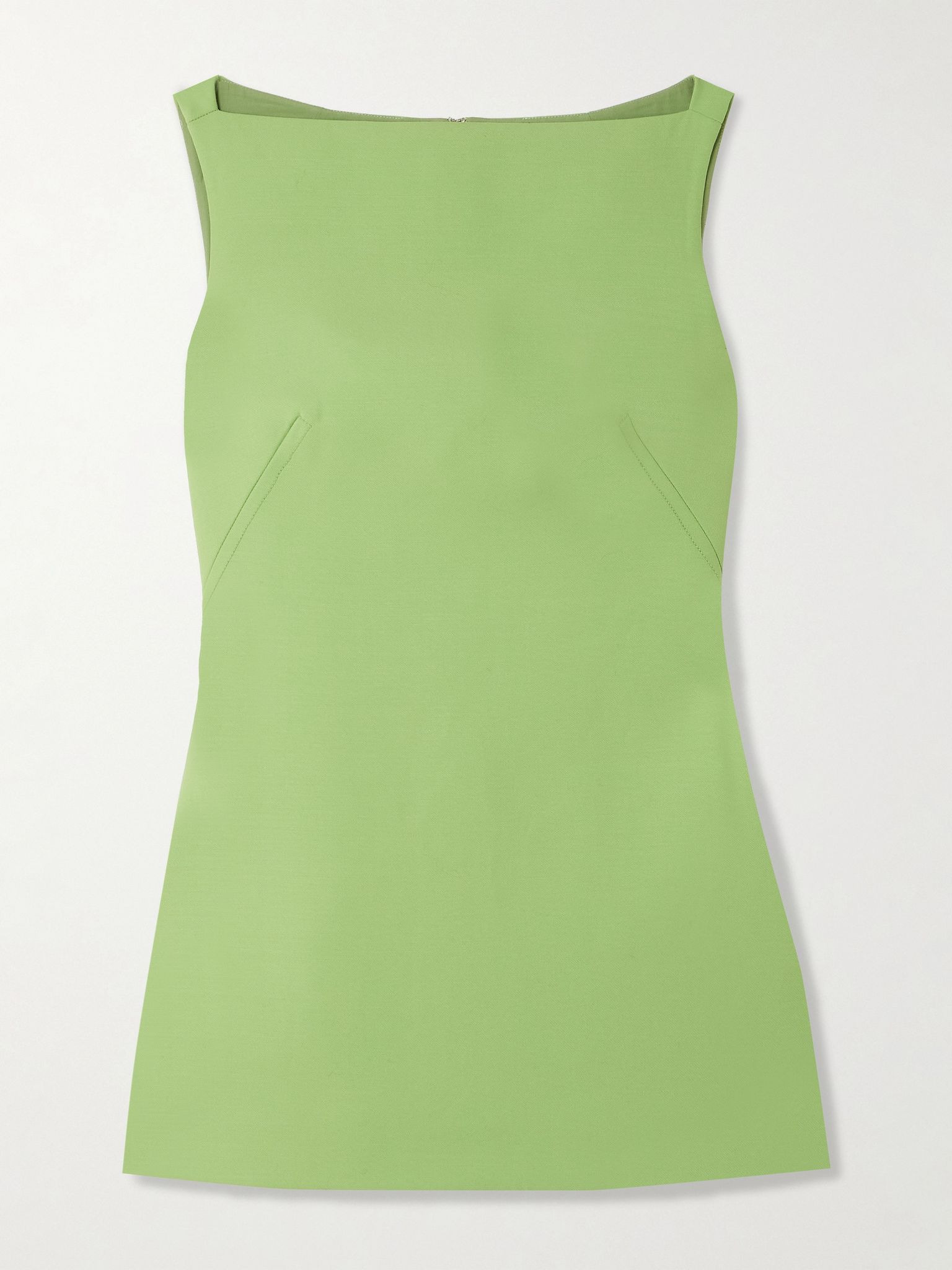 Emilia Wickstead's Fall '25 collection draws inspiration from the women whose "creative brilliance" shaped the '60s film The Birds, which was based on Daphne du Maurier's short story and starred Tippi Hedren. This 'Rifer' mini dress is cut from wool-crepe with an elegant bateau neckline and a darted bodice. We love it solo, but it also looked great with knitwear on the runway. Size & Fit - Fits true to size, take your normal size - Cut for a slim fit - Mid-weight, non-stretchy fabric - Model is 177cm/ 5'10" and is wearing a UK 8 Model measurements: - Bust: 77cm/ 30.5" - Waist: 62cm/ 24.5" - Hip: 88cm/ 34.5" Details & Care - Green wool-crepe - Concealed hook and zip fastening at back - 100% wool; lining: 73% acetate, 27% silk - Fully lined - Dry clean - Designer color: Pistachio