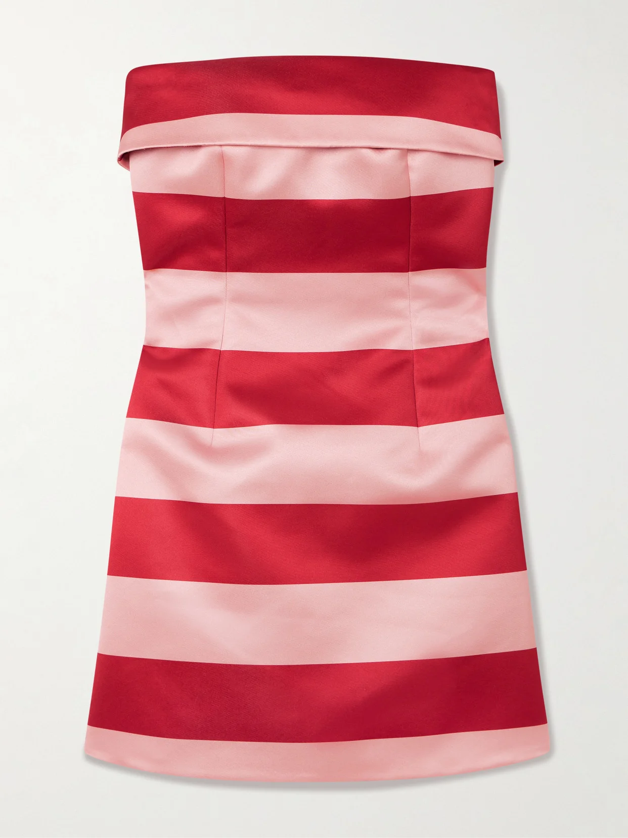 EXCLUSIVE AT NET-A-PORTER. The uplifting candy stripes on Emilia Wickstead's 'Sidnie' mini dress evoke the "theatrical aesthetic" of '60s film Juliet of the Spirits. Made from duchesse-satin, it has a strapless foldover neckline and fitted bodice that flares out to an A-line skirt.