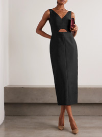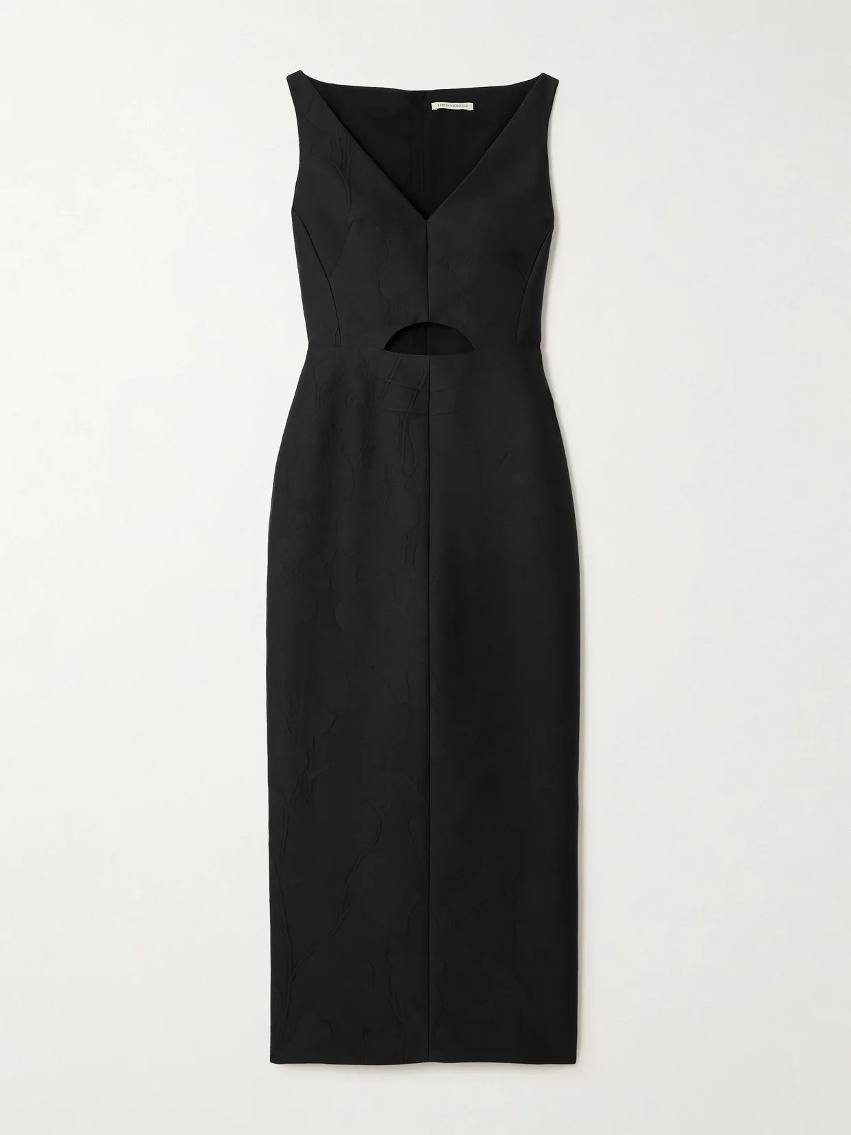 Emilia Wickstead's Spring '24 runway collection pays homage to the free-thinking women who led sartorial liberation in the South of France during the 1930s. In a clean-lined, architectural silhouette, this 'Ilyse' dress is cut from floral-embossed cloque and has a statement cutout below a deep v-neckline.