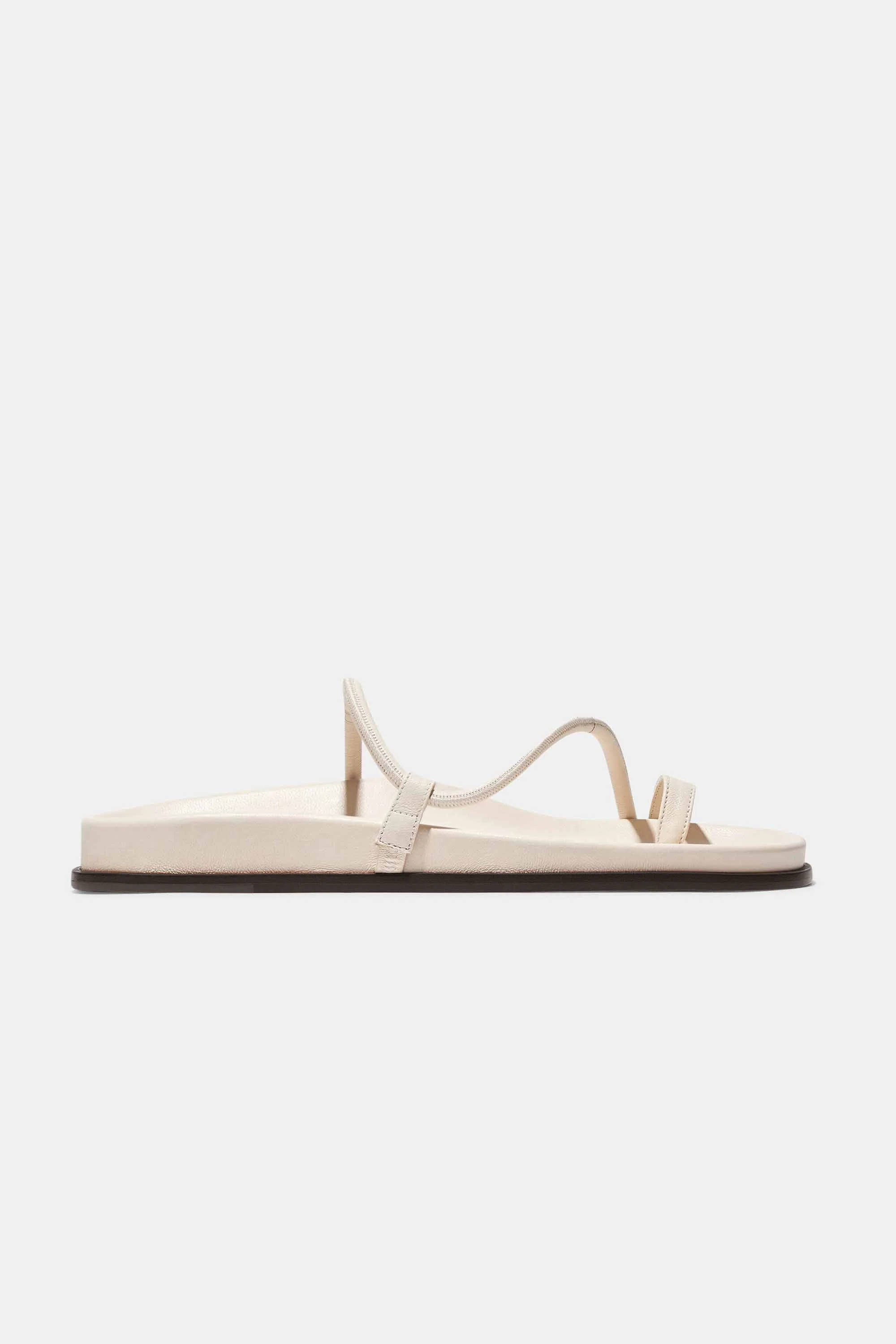 Our bestselling Susan Slide reimagined, the Bari traces elegant lines along the foot in thick nappa cording. It is set upon a nappa-covered upper and welted leather fussbett sole that feels sumptuous and comfortable. This sandal is designed with the strap to fit across the vamp of the foot, not around the ankle. It may feel initially tight and will stretch and mold to your feet with wear. SIZE & FIT - Fits true to size, take your normal size - If between sizes, size up to the nearest whole size - Fits all feet comfortably with a wide, cushioned footbed MATERIALS & DETAILS - Heel Measurement: .25" / 5mm - White nappa leather - Slip on - Made in Spain - REACH certified for responsible leather production
