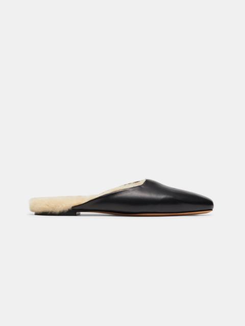 FLAT MULE IN BLACK SHEARLING NAPPA