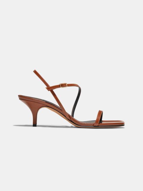 A square-toe sandal on a 50mm tapered heel, the Hugo gives a subtle lift to create a long silhouette. Calfskin or nappa straps create geometric lines across the foot and affix in a clasp, and the tapered heel supports a lightly padded insole and a smooth leather lining. SIZE & FIT - Fits true to size, take your normal size - Fits regular, narrow, and wide feet MATERIALS & DETAILS - Heel Measurement: 2" / 50mm - Gold metallic nappa leather - Buckle ankle strap - Made in Italy - Leather Working Group certified for responsible leather production