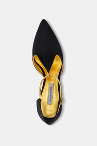 The Leandra — whose design was inspired by muse, Leandra Medine — is an update to the Chelsea style, with a 35 mm kitten heel. With an elongated point toe and distinctive V-shaped T-strap reminiscent of Mary Janes, the sleek cut out silhouette is a sharp finish to tailoring and feminine attire alike, fastening at the ankle with a delicate buckled strap. SIZE & FIT - Fits true to size, take your normal size - Fits regular or narrow feet best MATERIALS & DETAILS - Heel Measurement: 1.4" / 35mm - Black satin - Made in Italy - Leather Working Group certified for responsible leather production