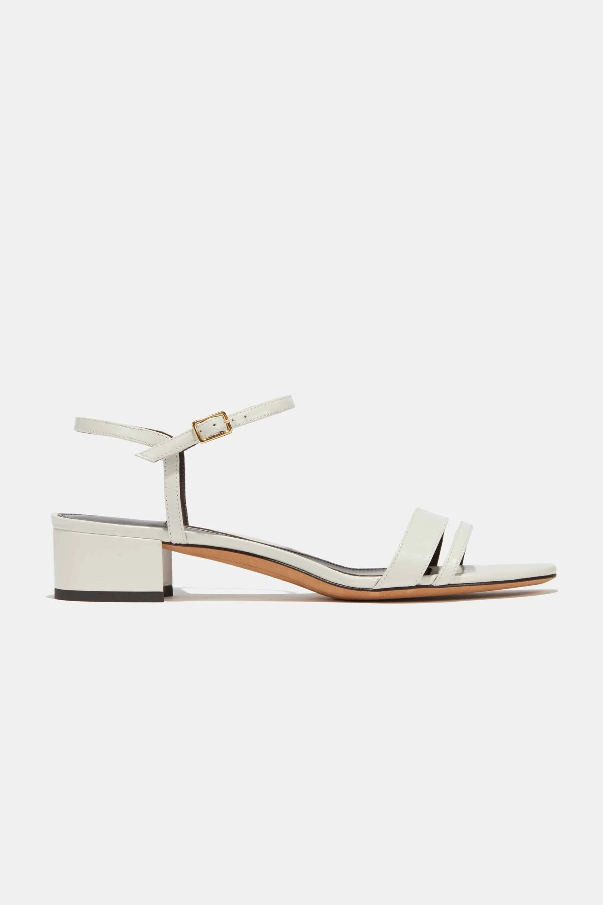 A timeless shape with a modern finish, the Simple Block Heel elevates looks for day or evening. The 35mm heel is balanced with a delicate ankle strap and double toe band detail. SIZE & FIT - Fits true to size, take your normal size - Fits regular or narrow feet best MATERIALS & DETAILS - Heel Measurement: 1.5" / 35mm - White nappa leather - Made in Italy - REACH certified for responsible leather production