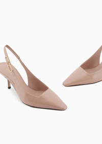 Patent-leather slingback court shoes with eagle plate