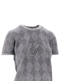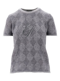 argyle-patterned T-shirt Highlights - Grey - Embroidered logo to the front - Short sleeves - Round neck Imported Composition Virgin Wool 90%, Cashmere 10% Washing instructions Read Manufacturer Guidelines