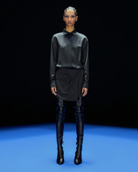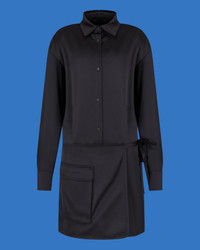 Dress with classic shirt collar and skirt with a sarong-style closure panel, in a viscose-blend satin made from certified recycled material. Emporio Armani maintains its focus on sustainability with the new Armani Sustainability Values (ASV) capsule collection, highlighting the need for a supply chain that is responsible and attentive to the resources of our planet. Named Black Blue, this futuristic collection takes us to a colour dimension that evokes distant, uncharted planets. The alternation of two key colours, blue and black, explodes in the Cosmos print, giving the entire collection a modern feel. The clothing is defined by atypical contrasting shapes: sometimes oversized for exceptional comfort and freedom of movement, and sometimes super skinny to enhance the silhouette with ultra-elongated lines. Hints of feminine colour harmoniously complete the blue-black pairing. Product Code: 6D2AA12NB6Z10999 Details Composition 49% Polyester 47% Viscose 4% Elastane The fabric is made of 49% recycled polyester Satin Classic collar Front buttoning Long sleeves Single-buttoned cuffs Wrap skirt with ties Back yoke
